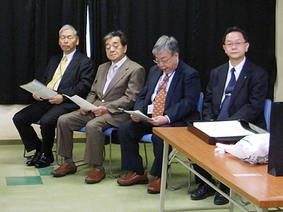 授賞式の各プレゼンテーター、右から野津事務所長(動植物公園事務所)、高橋園長(動物園)、松村理事長(社団法人大阪市動物園協会理事長)、原副社長(株式会社テクノロジーネットワークス)
