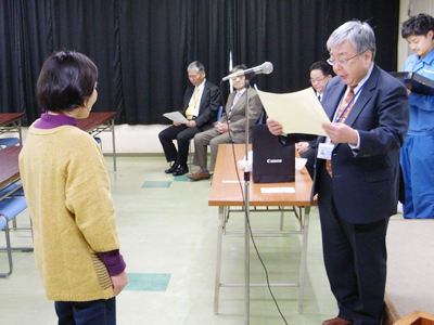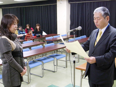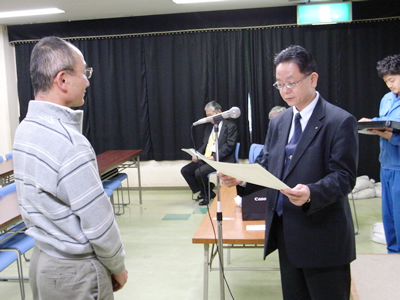 まずは大阪市長賞の表彰状が野津事務所長から「てらさん」に授与されました。
