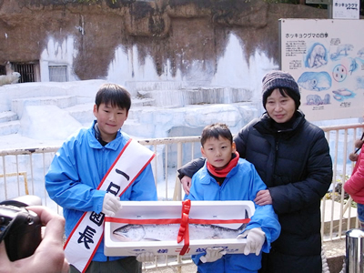 ホッキョクグマ「バフィン」の21歳の誕生日イベントに動物園園長賞を受賞したQちゃんさんとお孫さんの偉楓くん、達幹くんにご参加いただきました。